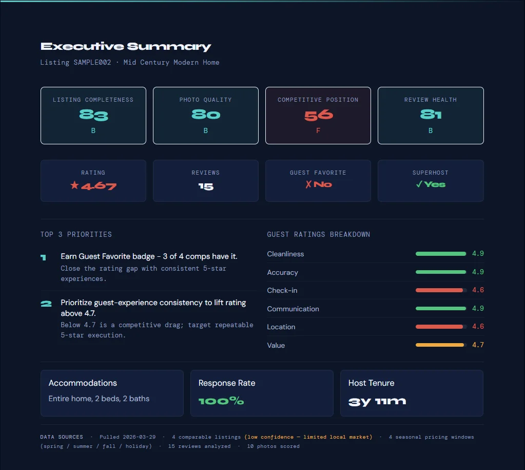 Paste your Airbnb listing URL and pay $39. No account required.